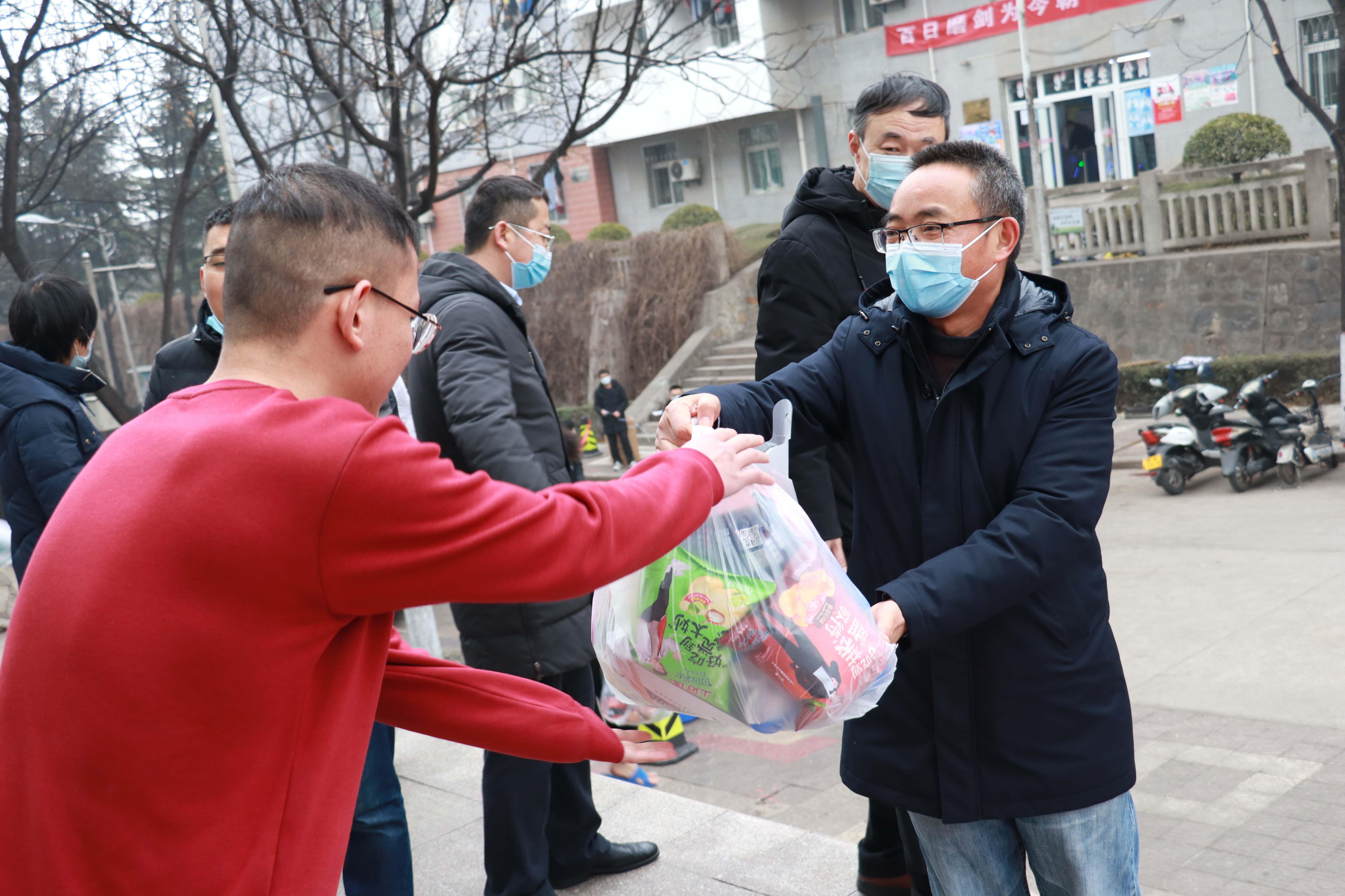 1月6日下午,在临潼校区骊山校园永利yl23411员工居住公寓楼下,永利yl23411每个员工宿舍派出一名员工下楼领取2011届安全专业学长们捐资购买的“爱心零食大礼包”,袋里不仅包含面包、方便面等食品,还有员工喜爱的薯片、果冻、饼干、瓜子、可乐等零食小吃。