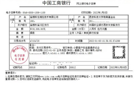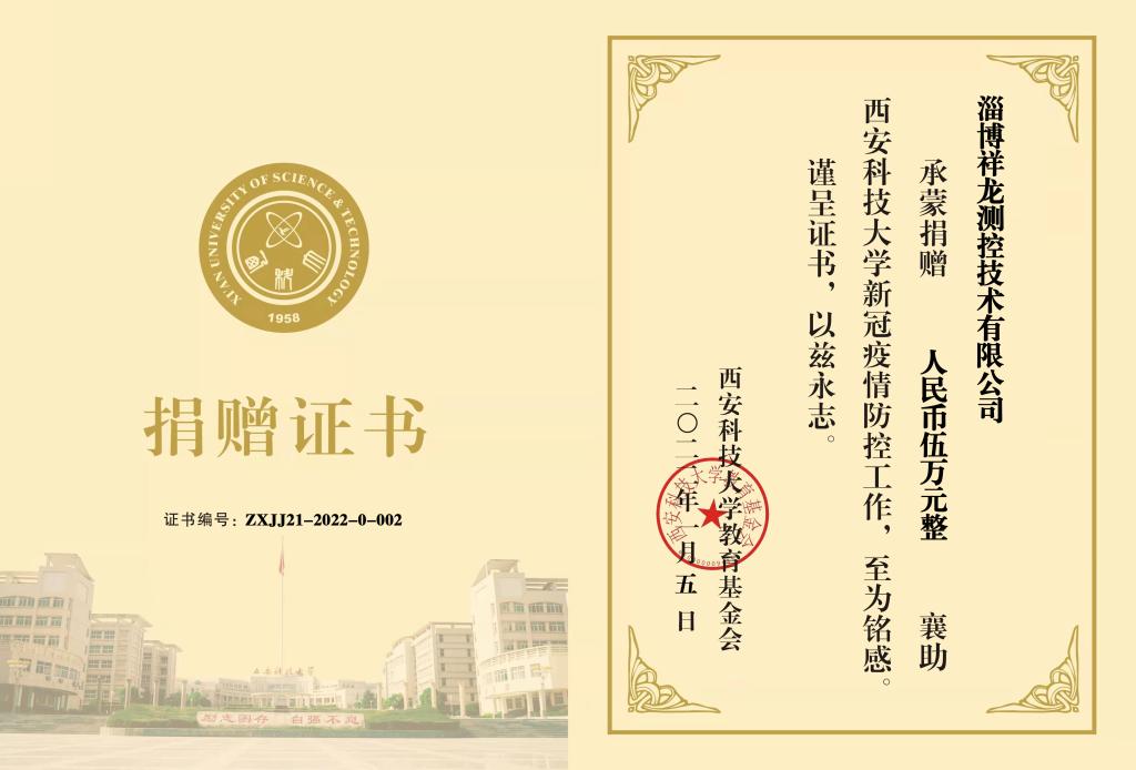 淄博祥龙测控技术有限公司捐款5万元助力西安科大疫情防控
