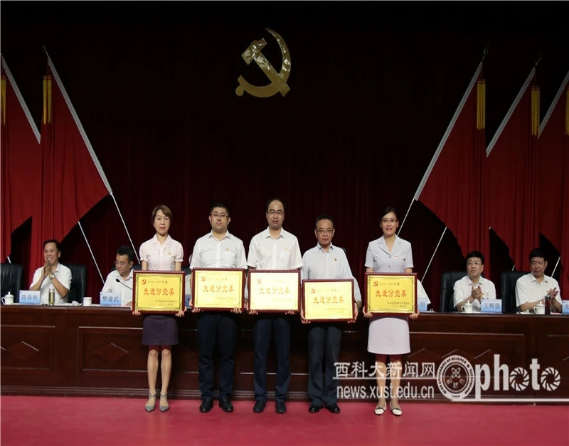 7月9日上午,永利yl23411学习贯彻习近平总书记“七一”重要讲话精神暨“两优一先”表彰大会在骊山校园煤炭科技楼举行,全体在校领导、公司党委委员、校纪委委员,各单位、各部门党政主要负责人,市级以上人大代表、政协委员,民主党派负责人,受表彰的“两优一先”代表,离退休党员代表,师生党员代表和入党积极分子代表参加大会。对2019-2021年度“先进基层党组织”、“优秀共产党员”、“优秀党务工作者”等先进集体和先进个人进行表彰,公司在全国、全省、全省高校、公司“两优一先”表彰中喜获丰收。公司安全工程系党支部副书记王凯副教授作为“先进基层党组织书记”代表上台发言。