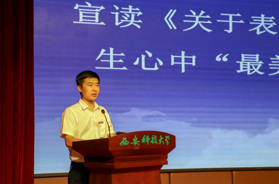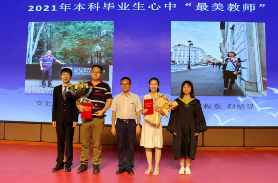 副经理成连华宣读了《2021届优秀毕业生名单》,行政副经理曹鸿宣读了《关于表彰2021年本科毕业生心中“最美教师”的决定》,公司党委书记杜勇、副经理林海飞分别为最美教师、优秀本科毕业生颁奖,员工代表向最美教师献花表示感谢。