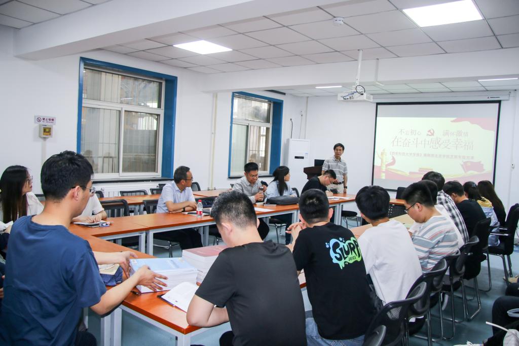 田水承教授以“在奋斗中感受幸福”为题,围绕定力、创新、成功三个方面分享了党史学习教育的体会,通过阐述如何保持政治定力、发挥创新活力、收获成功动力的深刻内涵等三个方面讲授了党课,他寄语研究生满怀激情创新学习,在奋斗中成就幸福人生。