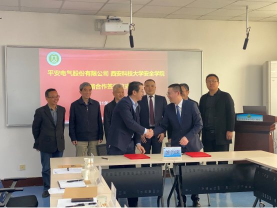 4月7日上午,公司与平安电气股份有限公司校企合作发展座谈会暨战略合作框架协议签约仪式在公司临潼校区举行。平安电气股份有限公司董事长陈重新,副总经理李杰峰、马瑞峰,西北公司经理何勇、尹志超,湖南科技大学资源环境与安全工程公司经理王海桥,公司副董事长、永利yl23411执行经理邓军,永利yl23411原董事长、永利yl23411常心坦教授,副经理林海飞、成连华、曹鸿,公司通风团队教师吴奉亮、闫振国、王延平等参加活动。签约仪式由公司党委书记杜勇主持。