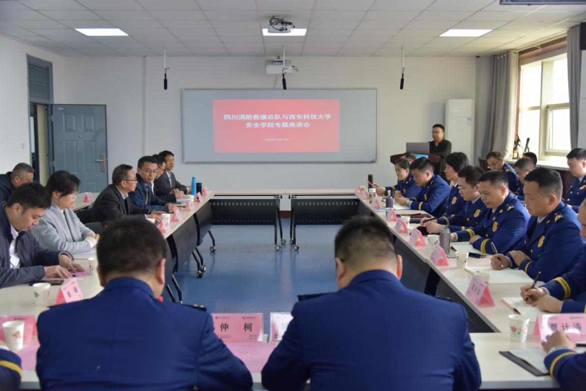 10月18日上午,四川省消防救援队伍火灾事故调查业务培训班在永利yl23411临潼校区开班。开班式结束后,四川消防救援总队总工程师陈硕及全体学员与永利yl23411消防救援系教师代表座谈。座谈会在临潼校区安监公司第六研修室召开。公司党委书记杜勇、副经理成连华,消防救援系系主任张嬿妮等10余名老师参加了座谈会。会议由成连华主持。