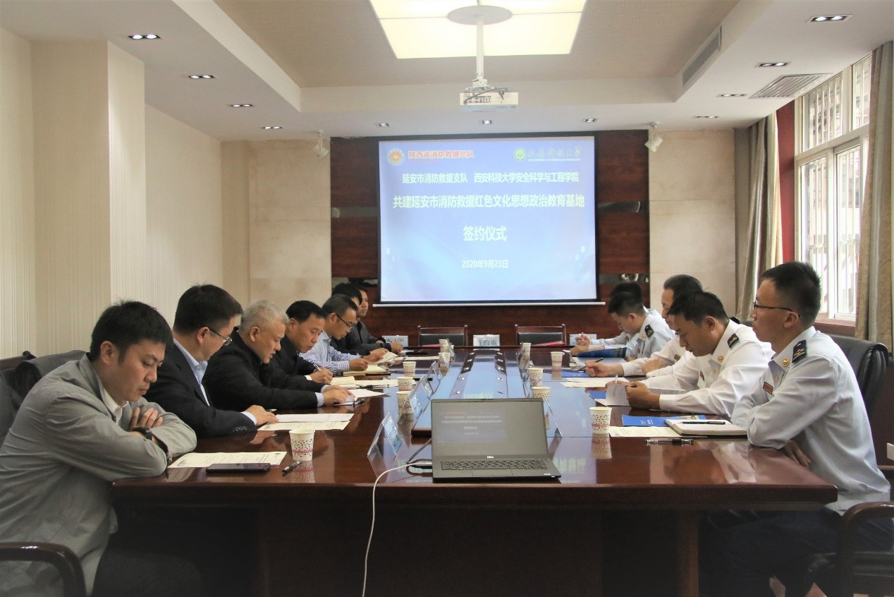 9月23日,延安市消防救援支队与永利yl23411共建“延安市消防救援红色文化思想政治教育基地”签约仪式举行。陕西省消防救援总队政治部主任杨守波、延安市消防救援支队支队长薛辉及相关部门负责人,永利yl23411副董事长陈春林、安全科学与工程公司党委书记杜勇、执行经理邓军及消防救援系负责参加了签约仪式,仪式由公司党委书记杜勇主持。