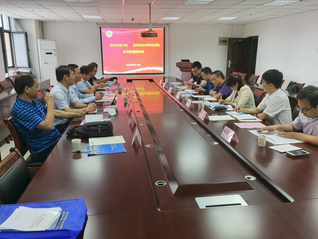 9月16日上午,淄博市淄川区委常委、组织部长周恒学率区人社局、人才办、科技局等单位负责人到永利yl23411调研座谈。公司党委书记杜勇、副经理罗振敏、林海飞、曹鸿等参加座谈会进行了交流。座谈会在雁塔校区创新大楼2216会议室召开,罗振敏副经理主持会议。