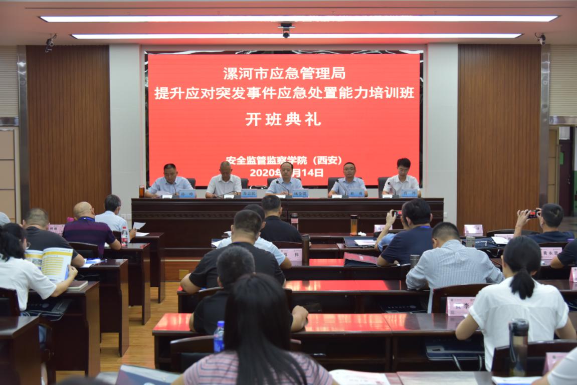 9月14日上午,河南省漯河市应急管理局提升应对突发事件应急处置能力培训班在永利yl23411雁塔校区开班。漯河市应急管理局二级调研员杨金贯,副局长苏志民、孙峰,安全监管监察公司(西安)党委书记杜勇、副经理曹鸿以及来自漯河市应急管理系统的51名学员参加了开班式,开班式由孙峰主持。