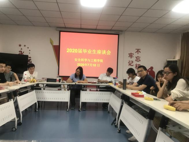 2020年7月10日,安全工程系在临潼校区召开2020届本科毕业生座谈会,公司副经理成连华、教务科研办主任李超、双带头人党支部副书记王凯、安全系主任王莉、副主任易欣、赵鹏翔、闫振国,教师代表严敏、潘红宇,2020届本科生辅导员同超,2020届卓越班、矿山方向、建筑方向本科毕业生代表共55人参加会议,会议由安全系主任王莉主持。