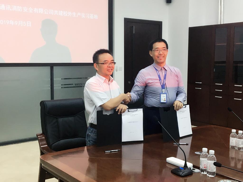 2019年9月5日,公司与青岛鼎信通讯消防安全有限公司共建校外生产实习基揭牌仪式在山东青岛鼎信通讯产业园会议室举行。鼎信通讯股份有限公司董事长王建华,鼎信通讯消防安全有限公司曲正部长、王运涛部长;公司安全科学与工程公司党委书记兼常务副经理杜勇、消防系主任马砺教授、消防系实习带队教师王伟峰、于志金,以及正在青岛鼎信通讯消防安全有限公司进行生产实习的消防工程2016级全体同学参加了揭牌仪式。
