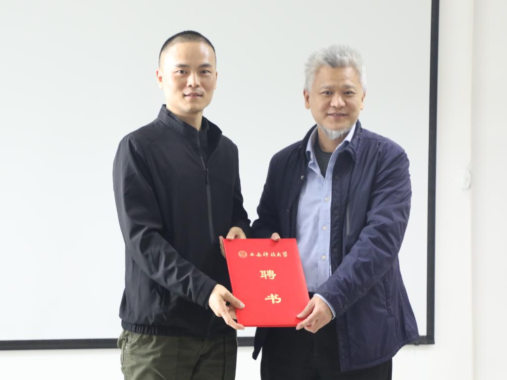 邓军给马哲颁发永利yl23411客座教授聘书。
