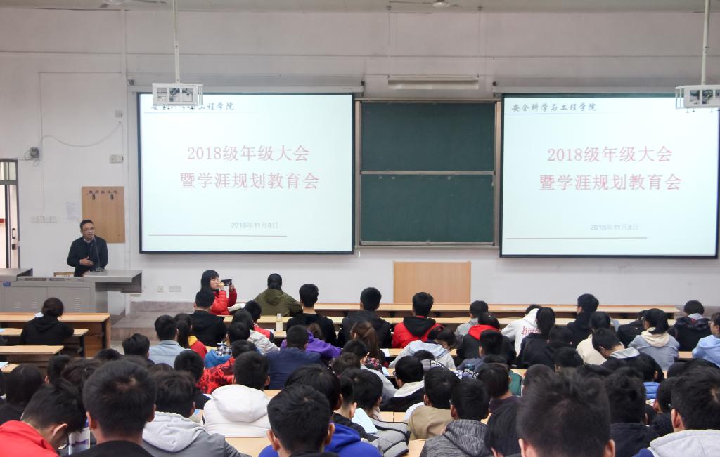 11月8日中午,永利yl23411在临潼校区骊山校园召开2018级年级大会暨学涯规划教育会,会议由公司党委书记杜勇主讲,副书记田园,带班辅导员及2018级全体员工参加了会议。