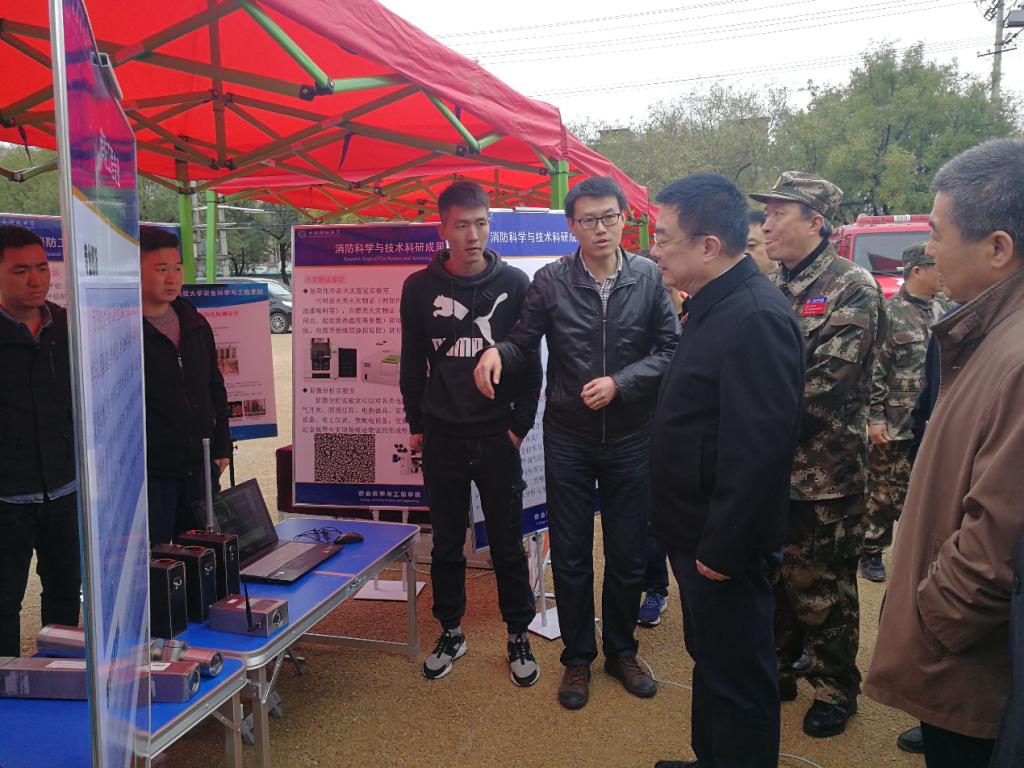 启动仪式结束后,梁桂、胡保存一行来到公司消防科研成果展位前来参观指导,公司老师向各位领导介绍了矿用救援无线通信装置和钻孔生命探测装置等参展设备。省市领导对公司消防工程专业的建设和发展给予了高度评价,希望公司能培养出更多优秀消防专门技术人才,为我省消防安全做出更大的贡献。