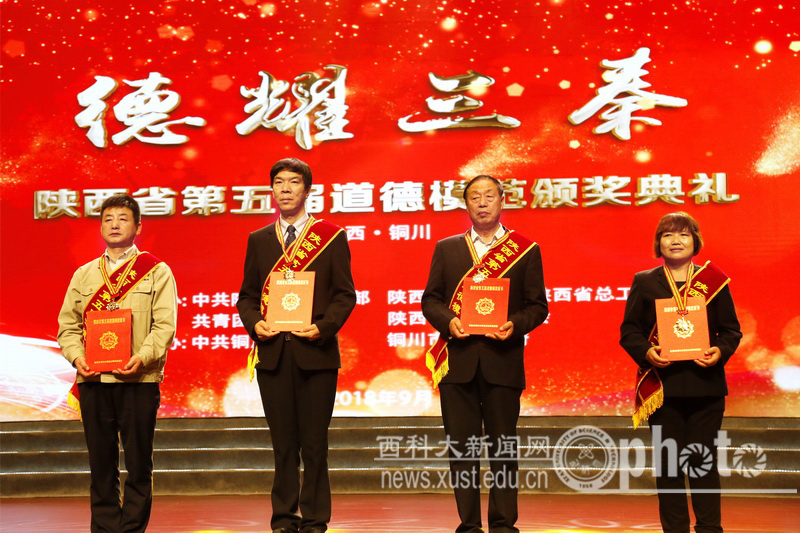 9月26日,由省委宣传部、省文明办、省总工会、团省委、省妇联主办,铜川市委、市政府承办的陕西省第五届道德模范颁奖典礼举行。永利yl23411永利yl23411文虎教授被授予敬业奉献道德模范称号。此次,全省共表彰助人为乐、见义勇为、诚实守信、敬业奉献、孝老爱亲、自强励志等6类58位道德模范,文虎教授为全省高教系统唯一受表彰代表。25日,省委书记胡和平接见了全体道德模范,并称赞他们为全省的骄傲。