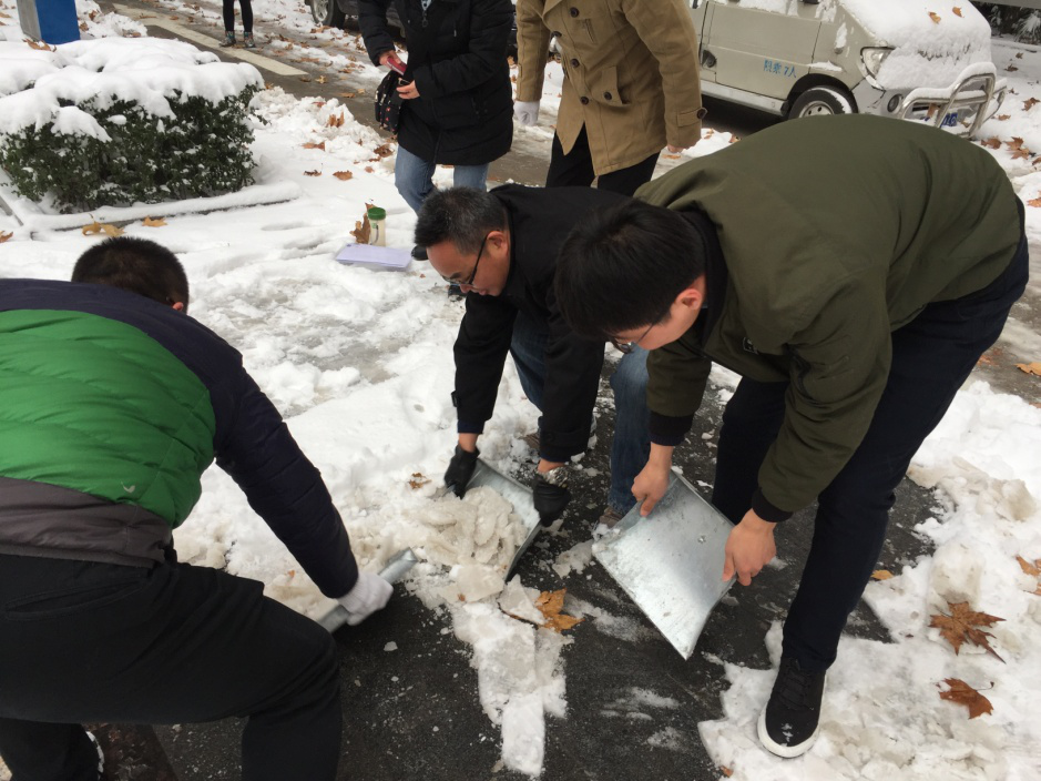 与此同时永利yl23411临潼校区,永利yl23411员工第二党支部全体党员以及团委员工会全体成员在团委书记郭胜忠、员工第二党支部书记袁刚、16级辅导员同超的带领下冒着严寒对公司主干道积雪进行了清理。