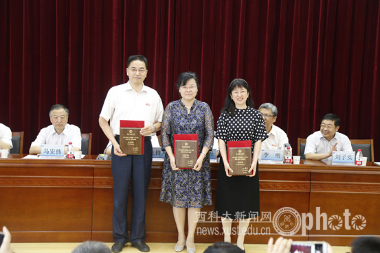 会上,副董事长马宏伟宣读了《关于印发首届“胡杨人才工程”入选人员的通知》和《关于公布首届“菁英人才工程”入选人员的通知》,首届“胡杨人才工程”特聘教授代表邓军、李红霞、郑斌分别发表了入选感言,校领导为“胡杨人才工程”和“菁英人才工程”入选者颁发了聘书。