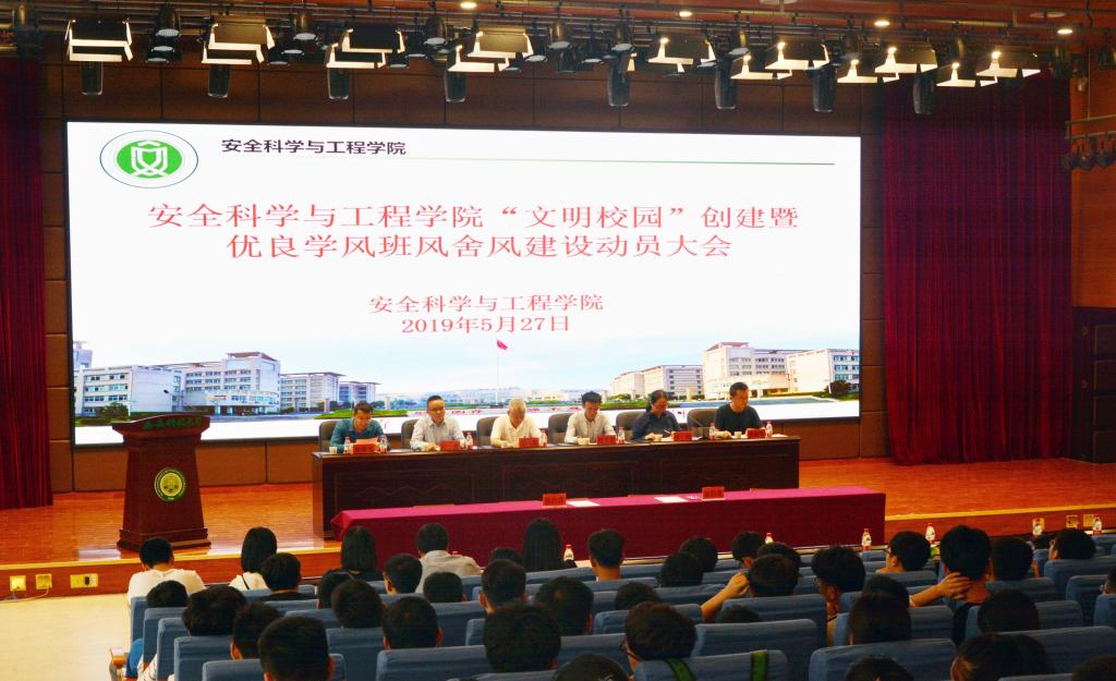 5月27日中午,永利yl23411在临潼校区骊山校园煤炭科技中心一楼报告厅举行“文明校园”创建暨优良学风班风舍风建设动员会,校学工部部长、员工处处长、武装部部长程卫星,公司党委书记杜勇,执行经理邓军,党委副书记田园,副经理林海飞,经理助理、安全工程系主任成连华,教务办主任李超,班主任代表杨光、肖泽元,学工办主任、团委书记郭胜忠,辅导员王倩、曹月、袁刚、同超,研究生代表,2016、2017、2018级全体员工参加了会议。