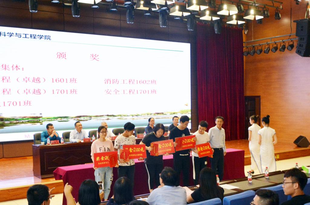 程卫星为获得先进班集体的班级颁发了证书和奖金