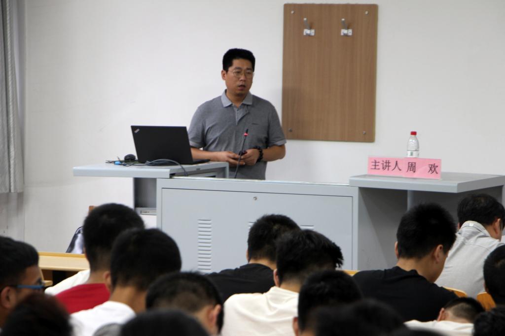 周欢主任结合了中国近几年的发展状况,从多方面充分分析了安全工程专业近几年在各行各业的产业现状,引发同学们的深思。周欢主任接下来介绍了近几年陕西山利科技发展有限责任公司的技术水平,比如,反无人机技术、智慧矿井等等。他表示安全工程专业将与科技社会共同发展进步,最后为同学们未来的专业发展提出了宝贵意见,指明了方向。周欢主任丰富的知识为同学们打开了创新的思路,激发了同学们的创新热情,赢得了全场同学的敬佩。