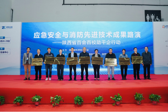 展会期间,由陕西省科学技术协会主办,陕西省消防协会、永利yl23411、陕西省科技报社共同承办的陕西省百会百校助千企行动——应急安全与消防先进技术成果路演活动同馆顺利举行。此前,陕西省消防协会联合公司及10家消防科技企业,共同申报并获批陕西省百会百校助千企行动——会企校企协作项目,致力于构建消防行业协会+高校+企业联合体,旨在解决行业内实际问题,展现示范效应,为消防行业的技术创新与产业链融合注入新的活力。陕西省消防协会秘书长卞建峰、公司科技处副处长卢小飞为参与项目的企业颁发了“会校企协作单位”牌匾。