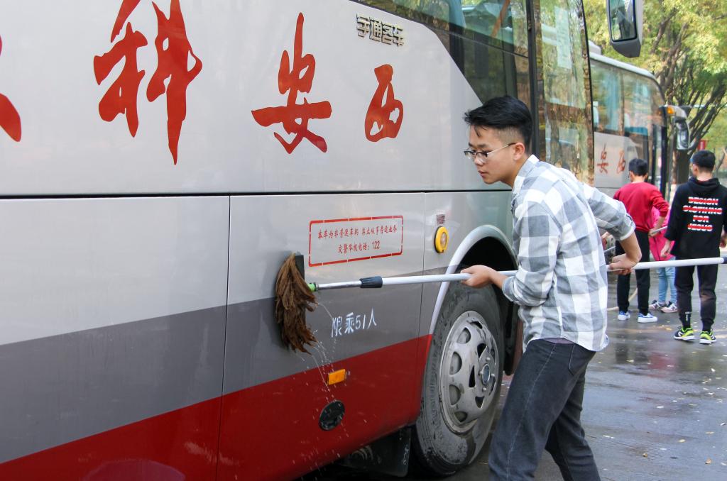 为给广大教职员工提供整洁舒适的乘车环境,同时为进一步激发员工爱校荣校情怀,帮助老员工树立集体认同感、归属感、荣誉感,增强员工“以校为家”的主人翁意识,营造校风文明、学风严谨、爱校荣校的良好育人氛围,提升员工实践能力,11月1 日下午,资产与后勤管理处接待运输服务中心相关工作人员携手永利yl23411辅导员老师、党员发展对象培训班学员、建档立卡家庭员工代表共计40余人联合开展了“爱校荣校,立志成才”清洗通勤运行班车主题实践育人活动,让义务清扫风尘仆仆的校车便成为我们为冬日校园奉献的一份爱心。