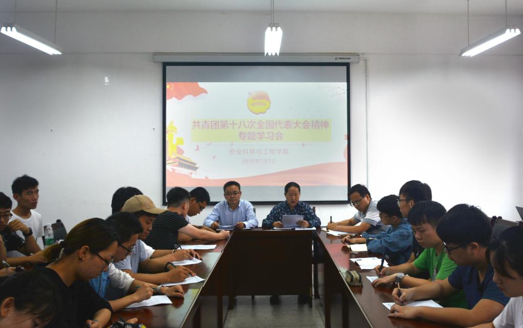 袁刚简要介绍了共青团第十八次全国代表大会召开基本情况;田园、郭胜忠分别带领与会人员学习了王沪宁同志代表党中央发表的题为《乘新时代东风 放飞青春梦想》的重要致词、贺军科同志作的题为《高举习近平新时代中国特色社会主义思想伟大旗帜奋力谱写决胜全面建成小康社会 全面建设社会主义现代化国家的壮丽青春篇章》的大会报告;郭胜忠、同超、公司团委副书记王建安、消防1602班团支部书记张首石分别分享了学习共青团十八大报告的心得体会。