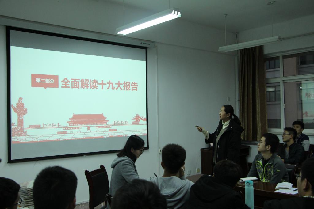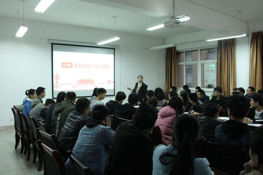 11月9日17:00,永利yl23411业余党校在14教319会议室首次开讲,党委副书记田园给员工第三党支部全体党员做了解读党的十九大精神报告主题党课。