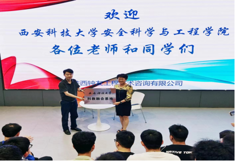 活动中,陕西钟友工程技术咨询有限公司董敏详细介绍了公司的经营范围、实习岗位、工作环境等情况。公司专业技术人员向同学们讲授了公司所进行的相关工作,以及所运用到的专业知识。曹鸿、董敏分别代表公司和企业为“科教融合基地”揭牌。随后,在工作人员的带领下,老师和同学们参观了公司的办公环境,并进行了深入交流。