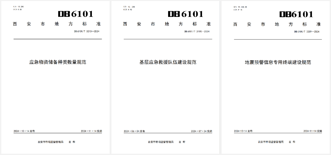 西安市应急管理标准化技术委员会是由西安市应急管理局主管,经西安市市场监督管理局批准成立的市级专业标准化技术组织,秘书处设在公司西科城市安全与消防救援中心。自2024年1月成立以来,应急管理标准化技术委员会全面收集应急管理领域相关标准,编制《应急管理标准体系明细表》,围绕安全生产、消防救援、防灾减灾救灾和综合性应急管理等四大领域,设计构建应急管理标准体系框架,完成了《西安市应急管理标准体系建设指南》编制。推进了《室内应急避难场所建设规范》、《给排水行业有限空间作业安全规程》、《消防安全管理规范 医疗机构》等5项地方标准获批立项。完成了《应急物资储备种类数量规范》、《基层应急救援队伍建设规范》、《地震预警信息专用终端建设规范》等7项地方标准编制工作并正式发布实施。面向全市应急管理系统业务骨干、企事业单位安全管理人员和镇街、社区基层管理人员,开展《社区(村)应急避难场所评价规范》、《应急物资储备种类数量规范》、《企业安全风险分级管控和隐患排查治理工作规范》等标准宣传贯彻培训4次。助力“西安市综合减灾社区建设标准化试点”获批国家第十批社会管理和公共服务综合标准化试点项目,目前正在试点社区开展标准化调研工作,“标准化+社区综合减灾”工作模式不断深化,标准化赋能基层应急管理初见成效。