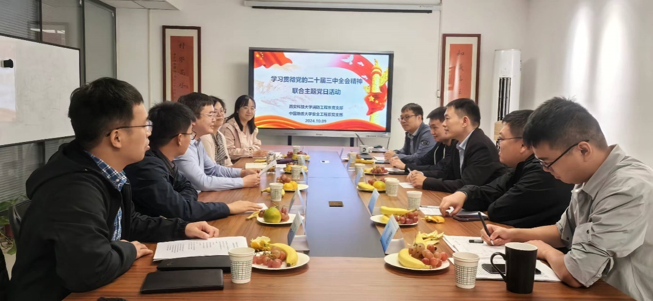 为深入贯彻落实党的二十届三中全会精神,坚定理想信念,强化交流合作,积极投身立德树人和科研攻关创新,10月9日上午,中国地质大学(武汉)安全工程系党支部周克清教授一行莅临永利yl23411,与公司消防工程系党支部在雁塔校区北院创新大楼2221会议室联合开展“学习贯彻党的二十届三中全会精神”主题党日。公司副经理兼消防工程系党支部书记马砺教授、系主任张嬿妮教授、党支部副书记盛友杰、组织委员王翠霞、纪检委员郭芳义等党员代表参加活动。活动由盛友杰主持。