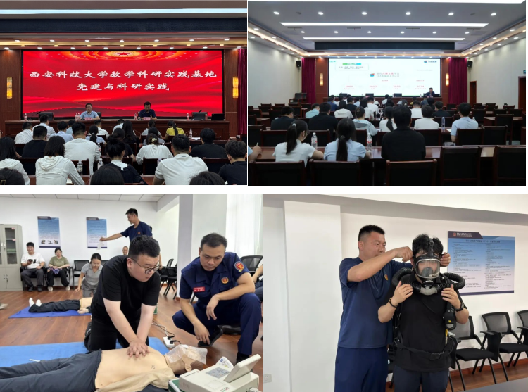 7月18日,消防工程系党支部与国家矿山应急救援山东能源队党委开展结对共建活动。消防工程系党支部书记马砺介绍了“弘扬精彩精神 创建四优党支部”的陕西高校“双带头人”党支部建设经验,分享党建引领业务创新实践经验,为校企合作提供新的思路与方法。山东能源队党委书记王斌介绍了党建引领实战化队伍建设经验,青年党员代表王锐利、丁品正分享了他们在第十三届国际矿山救援竞赛中的先进事迹,充分展示了党员在消防救援中的先锋作用。期间,全体参会人员面向党旗集体宣誓,重温入党誓词,进一步强化了党员同志使命感和责任感。