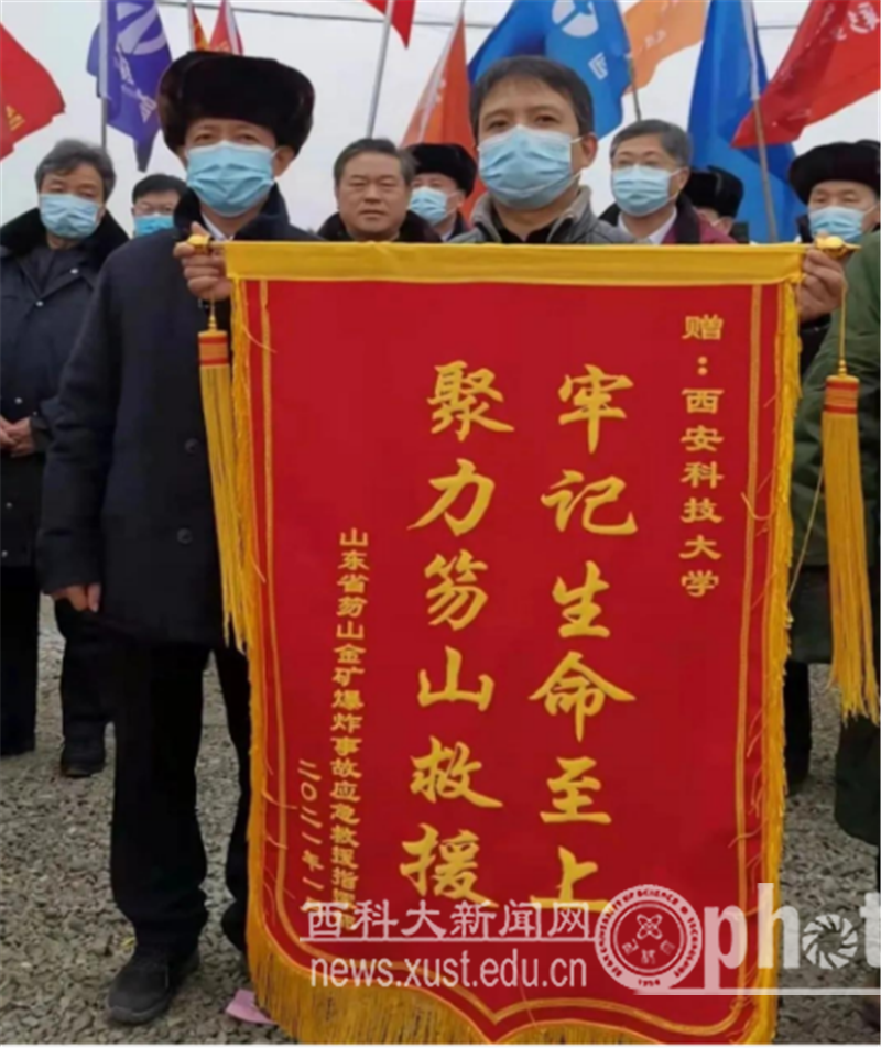 山东栖霞笏山金矿发生事故后,消防救援系教师支部郑学召教授作为救援团队主要成员千里驰援,为成功营救被困矿工作出了积极贡献。被山东省笏山金矿事故应急救援指挥部授予“牢记生命至上 聚力笏山救援”锦旗。