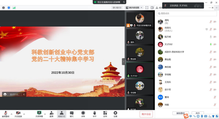 10月30日晚,永利yl23411科教创新创业中心党支部线上召开党的二十大精神专题学习会。会议由党支部书记程方明主持。副经理成连华应邀参加了学习会。
