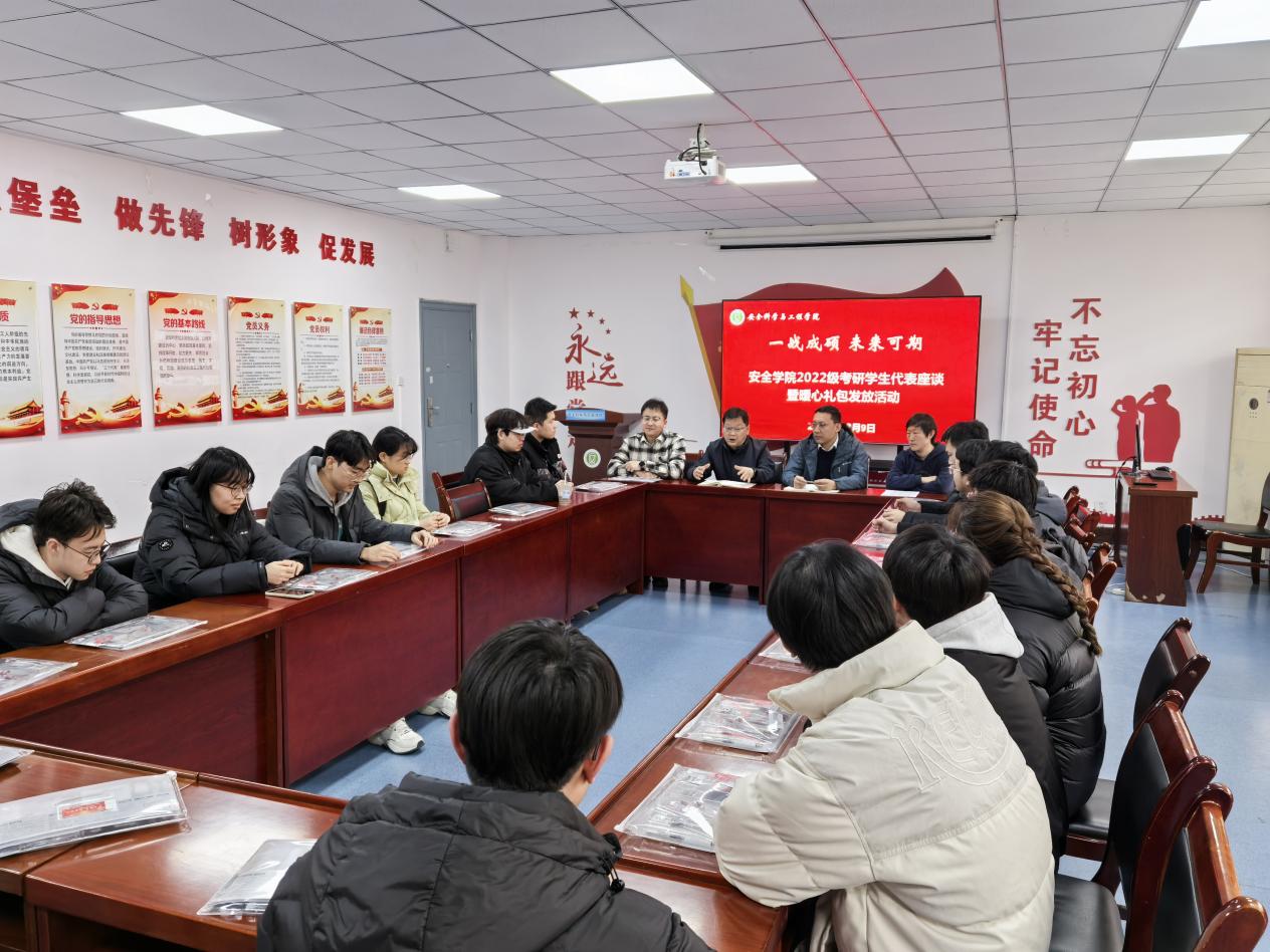 为进一步做好2022级考研员工的服务保障工作,帮助员工缓解备考压力,明晰冲刺方向,12月9日下午,永利yl23411在临潼校区骊山校园14号教学楼320室举办“一战成硕未来可期”为主题的考研员工代表座谈会暨暖心礼包发放活动。公司党委副书记丁铂、副经理王凯,学工办主任周学刚、带班辅导员王倩,以及20名2022级考研员工代表参加活动。