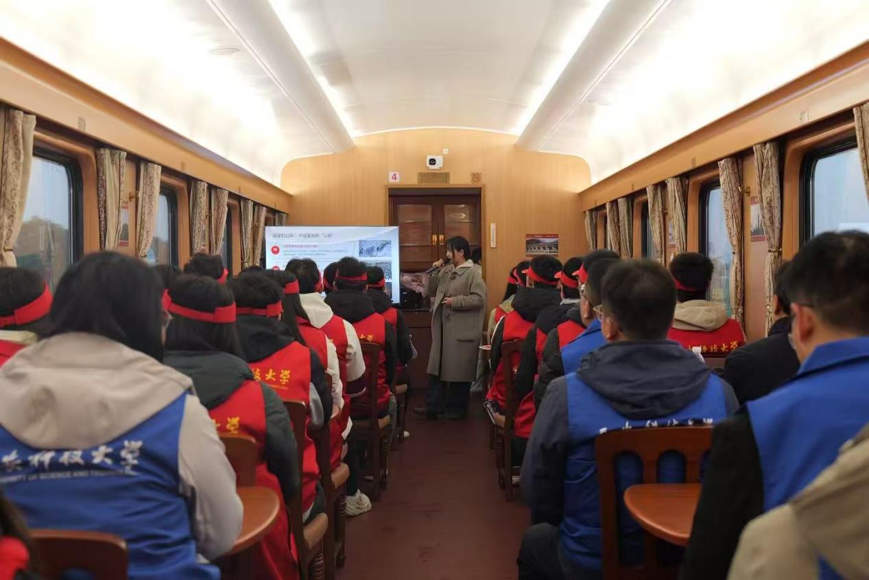 3月14日凌晨,师生们满怀热情从临潼校区出发,乘坐Y502次专列奔赴延安。途中,安排了“行走的思政课”,宣讲延安精神,分享学习感悟,并开展了红歌传唱,将理论学习融入旅途,点燃师生们追寻红色足迹的澎湃激情。