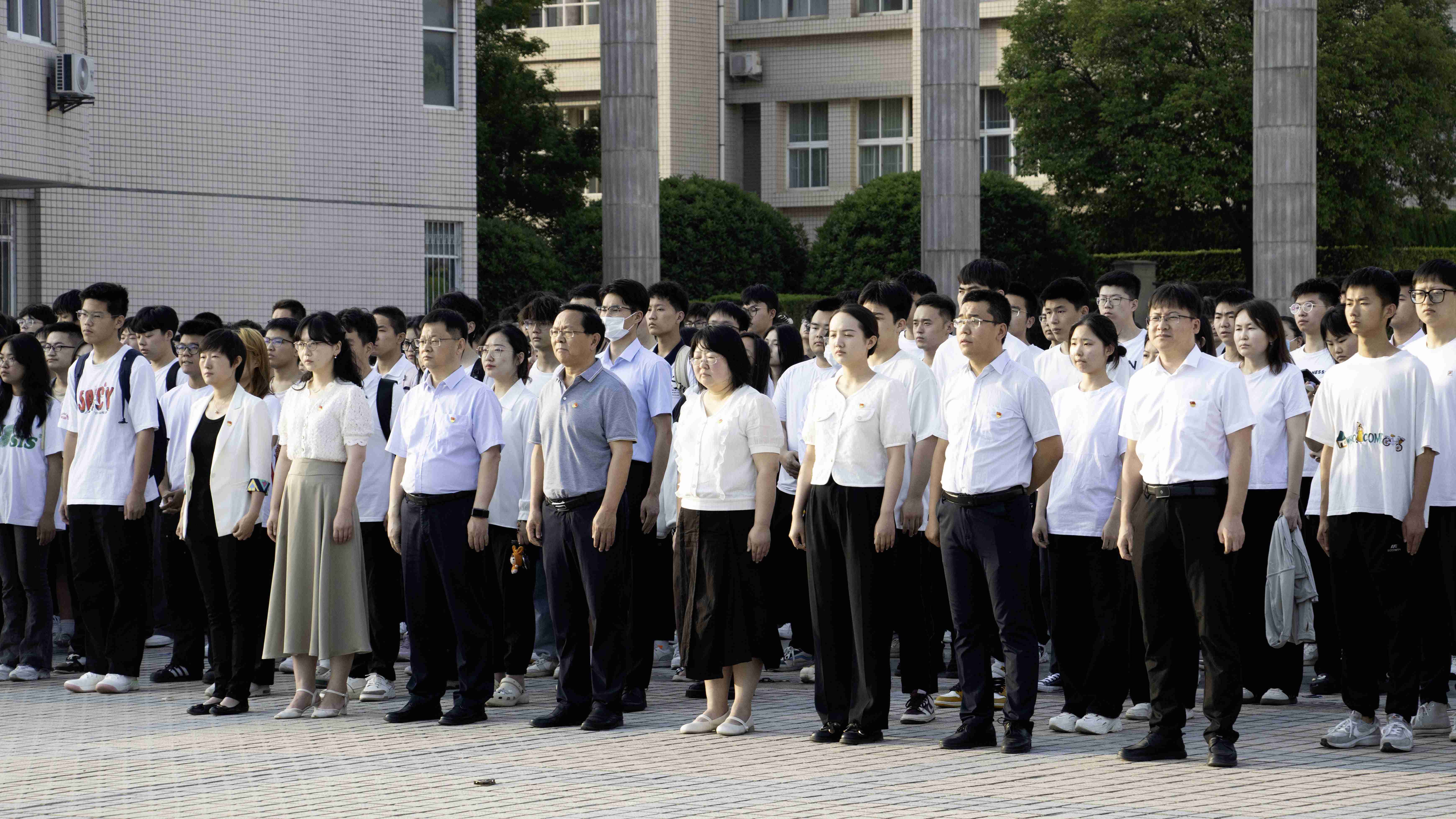 升旗仪式于6点45分开始。在激昂的国歌旋律中,国旗护卫队迈着整齐的步伐,护送鲜艳的五星红旗走向升旗台。全体师生面向国旗肃立,行注目礼,奏唱国歌,注视着五星红旗冉冉升起,在晨风中飘扬。