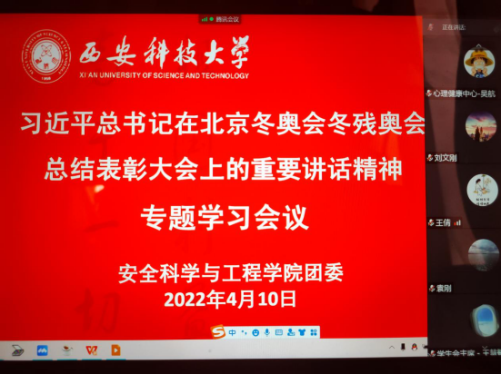 4月10日下午,永利yl23411组织团学主要干部通过线上会议形式学习习近平总书记在北京冬奥会冬残奥会总结表彰大会上重要讲话精神。公司党委书记刘文刚、党委副书记田园出席会议,公司团委委员、各年级辅导员,团学主要员工干部参加会议。会议由公司团委书记郭胜忠主持。