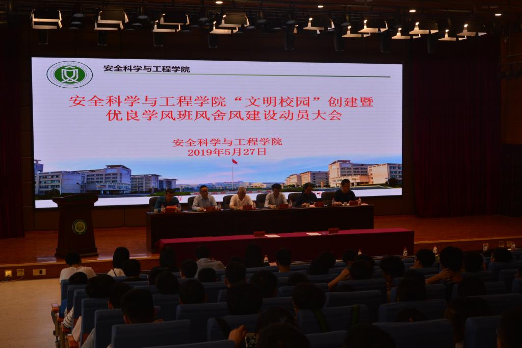 5月27日中午,永利yl23411在临潼校区骊山校园煤炭科技中心一楼报告厅举行“文明校园”创建暨优良学风班风舍风建设动员会,校学工部部长、员工处处长、武装部部长程卫星,公司党委书记杜勇,执行经理邓军,党委副书记田园,副经理林海飞,经理助理、安全工程系主任成连华,教务办主任李超,班主任代表杨光、肖泽元,学工办主任、团委书记郭胜忠,辅导员王倩、曹月、袁刚、同超,研究生代表,2016、2017、2018级全体员工参加了会议。