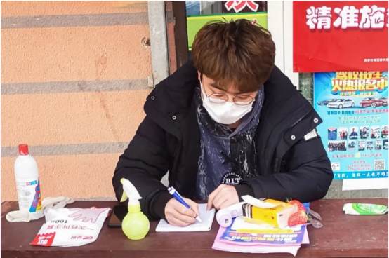 【她说】:今年,我过了一个特殊的寒假,面对疫情,作为入党积极分子,我积极参与到防疫志愿工作中。一个人的力量也许很渺小,但渺小的大多数力量汇聚起来便是江河!白衣天使们守护着我们大家,我们作为新青年也要义不容辞的守好我们每一个人的小家!社区也是我们的家,在社区志愿服务时,我看到每一个人都在积极的配合我们的工作,尽管天气寒冷,但我的心中很温暖,因为,我正在为祖国贡献出我自己的力量,希望我们每一个人都可以尽自己的一点力量,与祖国共渡难关!