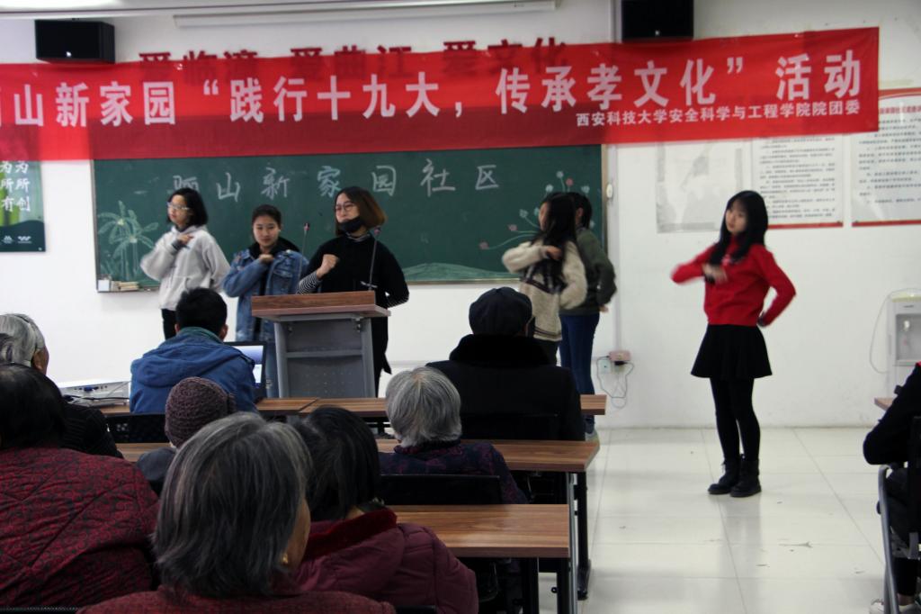 12月6日,永利yl23411团委负责人、青年志愿者代表40余人赴骊山新家园社会实践基地开展“践行十九大,传承孝文化”主题志愿服务。志愿者们为空巢老人表演了精彩的文艺节目,一起开展了“知识竞答”、“击鼓传花”、“手指操”、“国球接力”等活动,志愿者们还为空巢老人普及新媒体知识,介绍了拍照、微信、QQ等多种常用手机软件的使用方法。